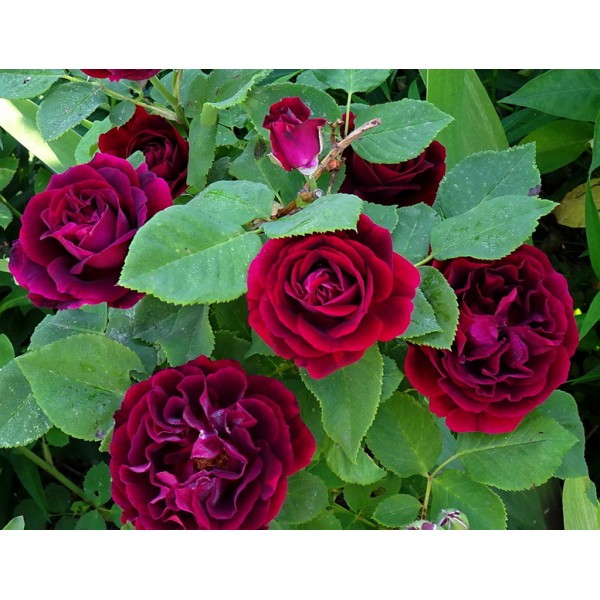 Гібридний перпетуал. Колір від фіолетового до темно-червоного, з червоним відтінком. Помірний аромат. Середньорослий, махровий (17-25 пелюсток), чашоподібна форма цвітіння. Цвіте пишними суцвіттями протягом усього сезону. Мало або взагалі немає колючок.